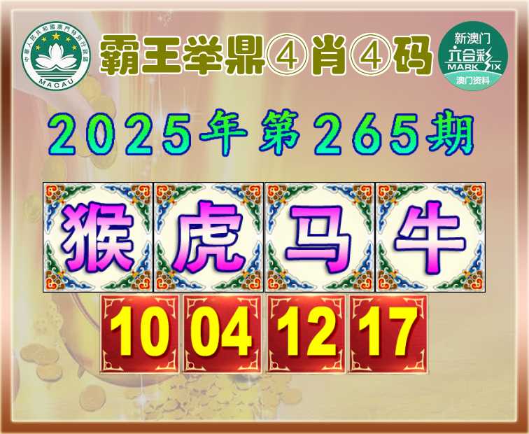 265期:《霸王举鼎》 🎪④肖④码🎪【虎马牛】【10.04.12.17】开:猴10