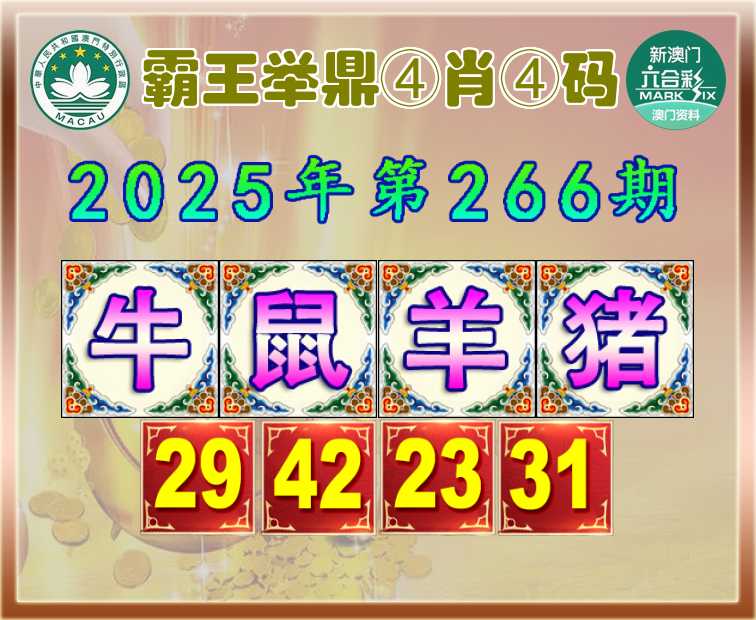 266期:《霸王举鼎》 🎪④肖④码🎪【鼠羊猪】【29.42.23.31】开:牛41