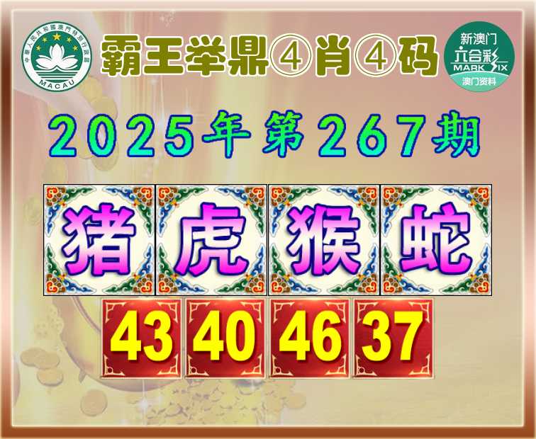 267期:《霸王举鼎》 🎪④肖④码🎪【猪虎猴蛇】【43.40.46.37】开:牛29