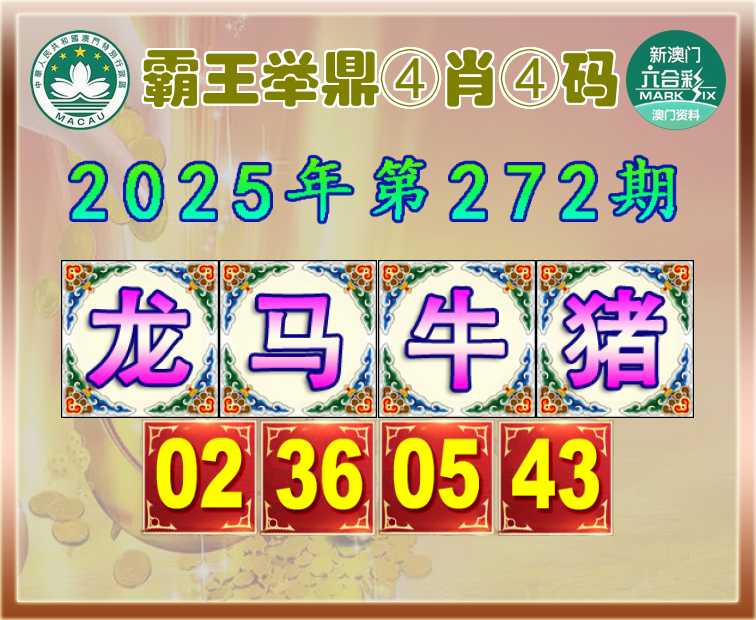 272期:《霸王举鼎》 🎪④肖④码🎪【龙牛猪】【02.36.05.43】开:马36