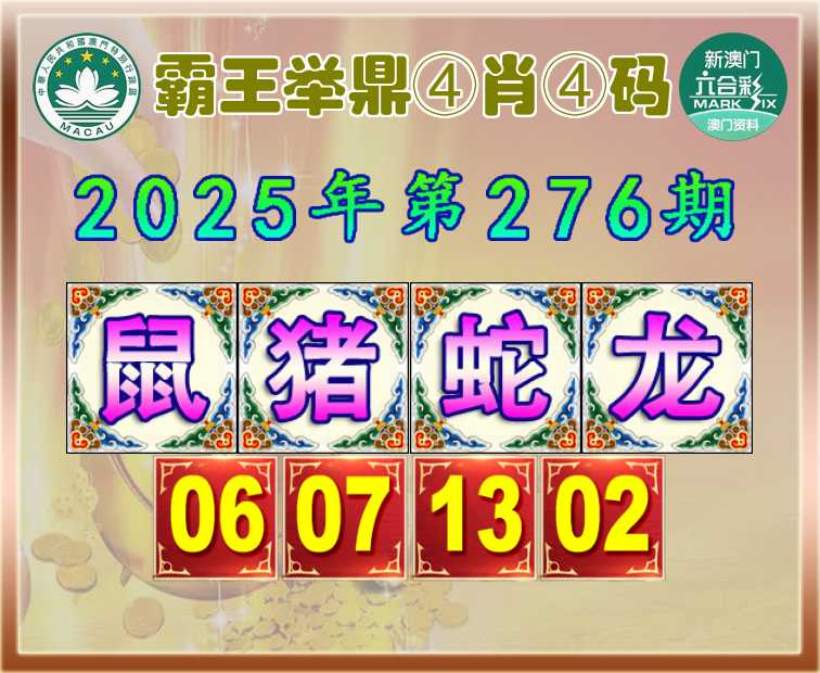 276期:《霸王举鼎》 🎪④肖④码🎪【鼠猪蛇龙】【06.07.13.02】开:鸡09
