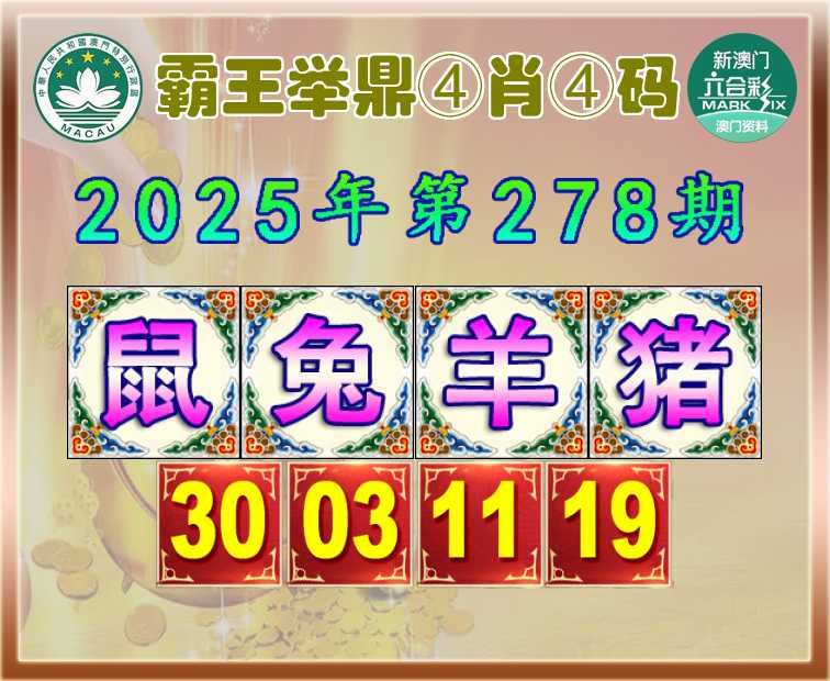 278期:《霸王举鼎》 🎪④肖④码🎪【鼠兔羊猪】【30.03.11.19】开:虎28