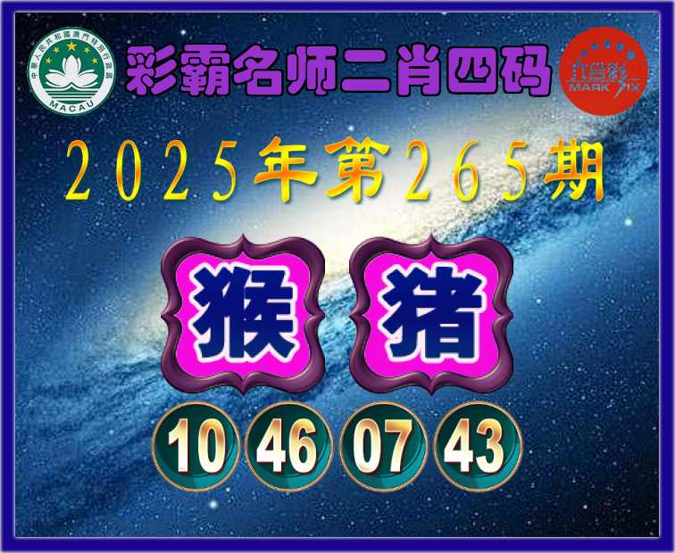 265期:『彩霸名师』 💄二肖四码💄【猪】【10.46.07.43】开:猴10