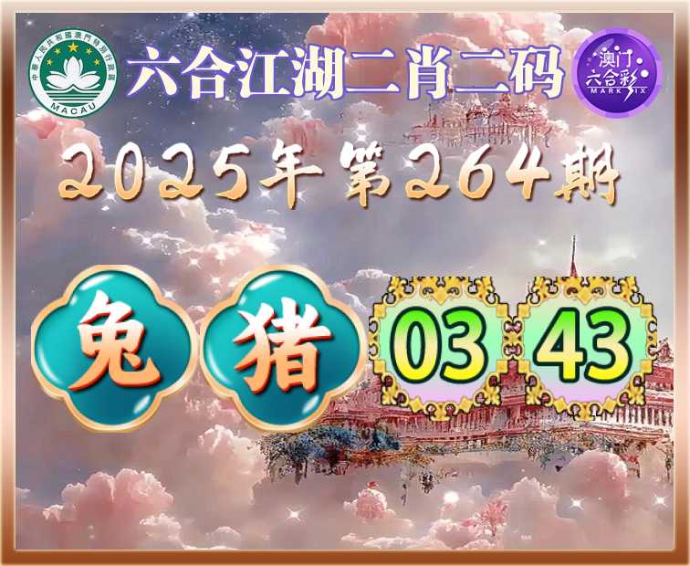 264期:【六合江湖】 🥧二肖二码🥧【兔】【03.43】开:猪43