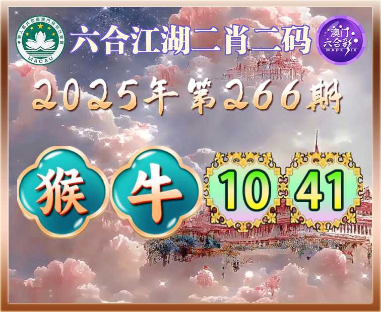 266期:【六合江湖】 🥧二肖二码🥧【猴】【10.41】开:牛41